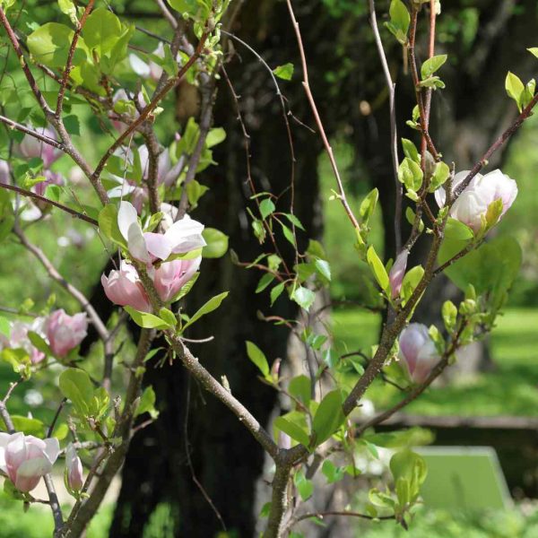 As flores da Magnólia ‘Nigra’ têm um formato tulipiforme, exalando um aroma suave e agradável, que se torna um verdadeiro espetáculo visual no jardim. Esta variedade é particularmente resistente ao frio de inverno, embora as suas flores possam ser sensíveis a geadas tardias da primavera, que podem danificar os botões florais se não estiverem devidamente protegidos.